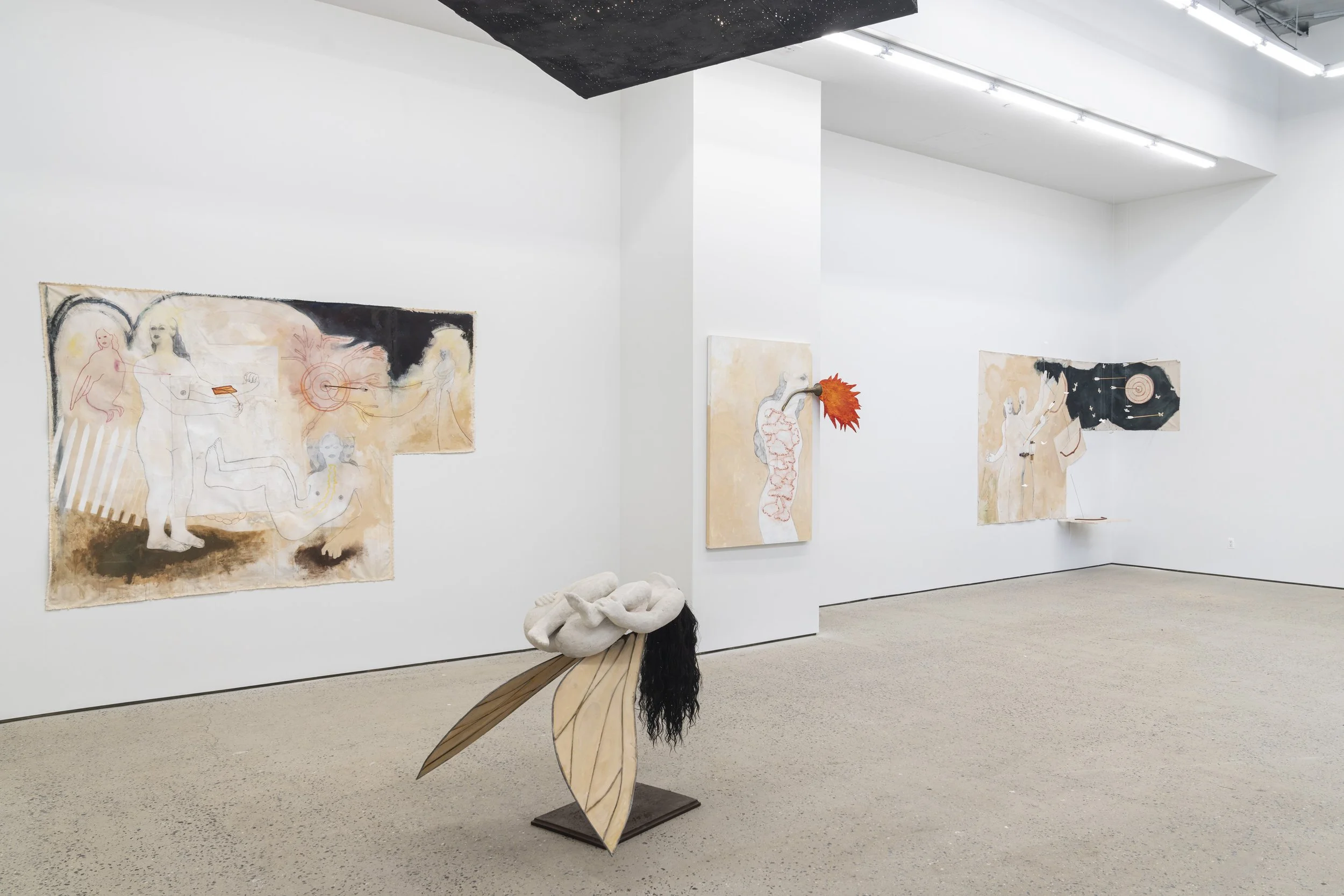 Bravo’s work has long operated through accumulation—of objects, stories, bodies, memories—building worlds that feel at once ancient and speculative. In this exhibition, that accumulation becomes bodily and cosmic: flies, ants, butterflies, constellations, organs, heavens. The individual dissolves into the collective; the self becomes a system. One could ascertain from these new elements demanding entry into the work, a departure from the artist’s previous characteristics which often featured nature's most inherently powerful beings, bulls, horses, snakes, and the like that they are a stand-in for our current social and political climate. Ultimately, conveying the suggestion, and fact, that there is power in numbers, a denial between the distinction of predator and prey, a hard study of the characteristics that we hold as a collective and the power in that.