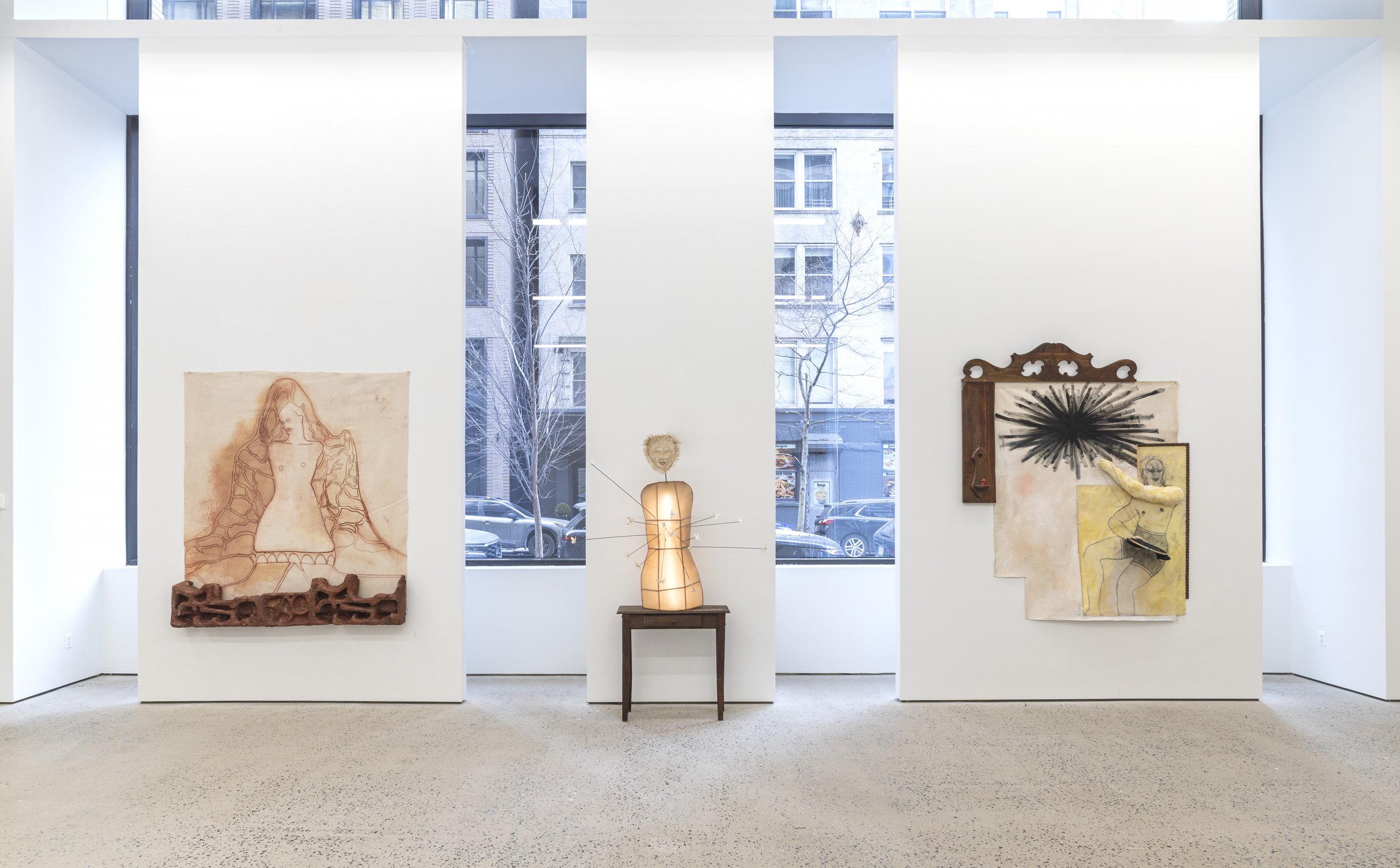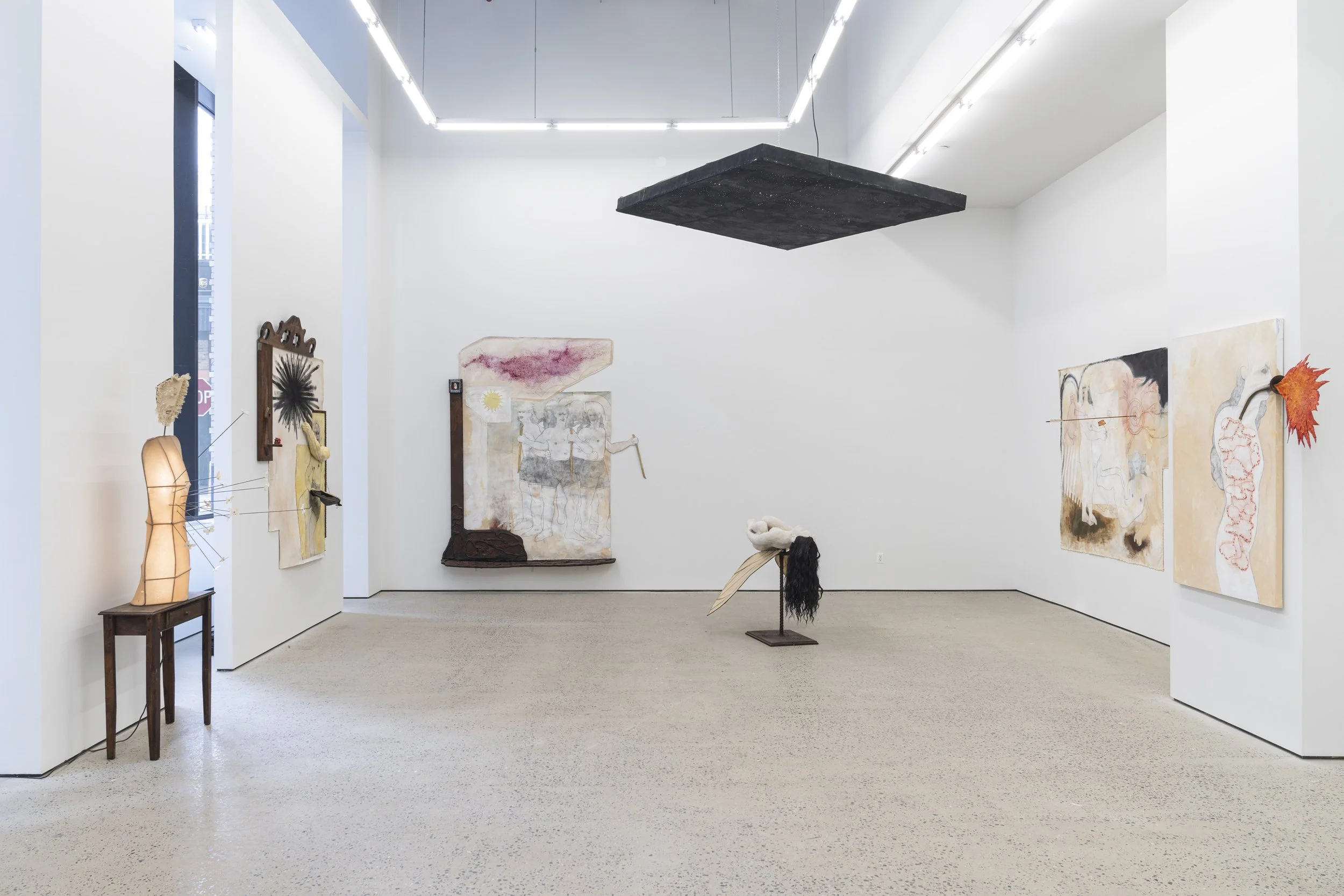 Swivel Gallery is pleased to present Like a Horde of Living Beings, We Gradually Covered the Earth, Amy Bravo’s second solo exhibition with the gallery. The exhibition brings together two new floor sculptures and six large-scale multimedia wall works, marking a deepening of Bravo’s mythic, materially dense practice into a meditation on survival, collectivity, and the strange persistence of life in inhospitable conditions.