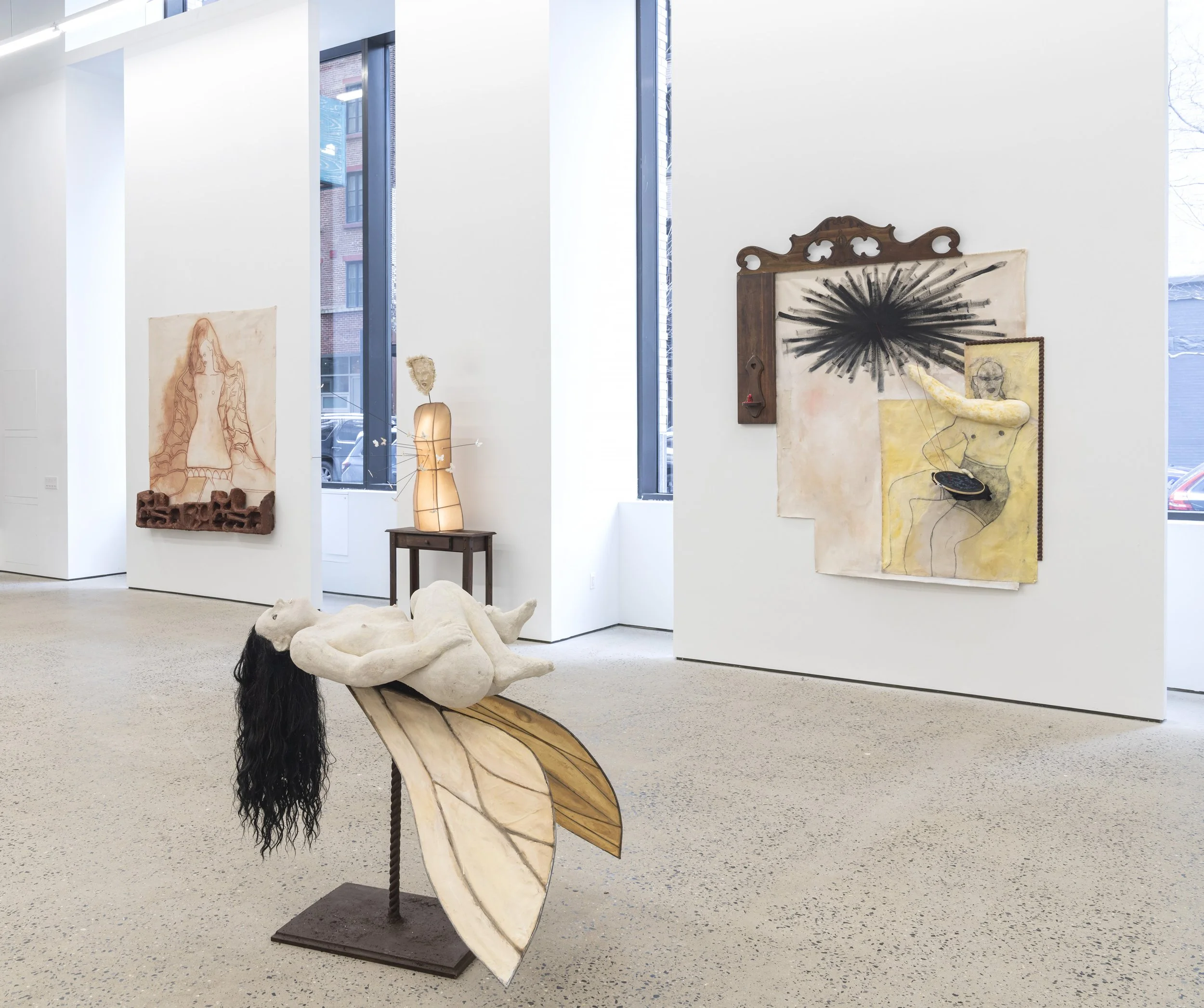 January is not a neutral setting in Bravo’s cosmology. It is a season of refusal. In her writing Alive in January, the artist conjures a speaker who rejects dormancy, and insists on movement when movement is least expected: a fly in winter, nearly undetectable, already gone by the time it is perceived. Her figures, part insect, part daughter, part afterimage, thread through the exhibition as both audience and narrators, suggesting not a triumph over death so much as an intimacy with it: choosing “the little deaths,” the blink, the hum after the television clicks off, the gasp between snores. Life persists not loudly, but sideways.