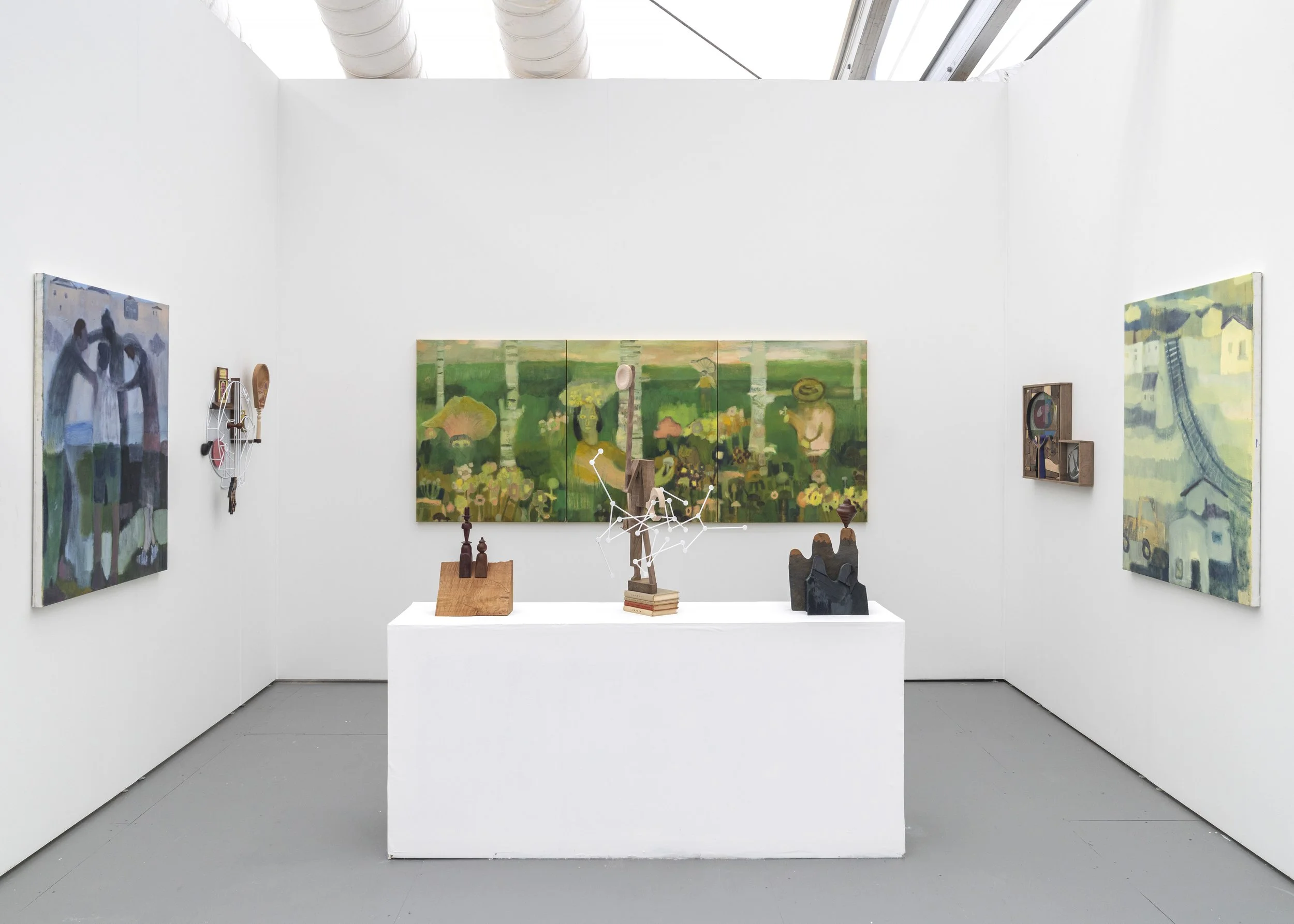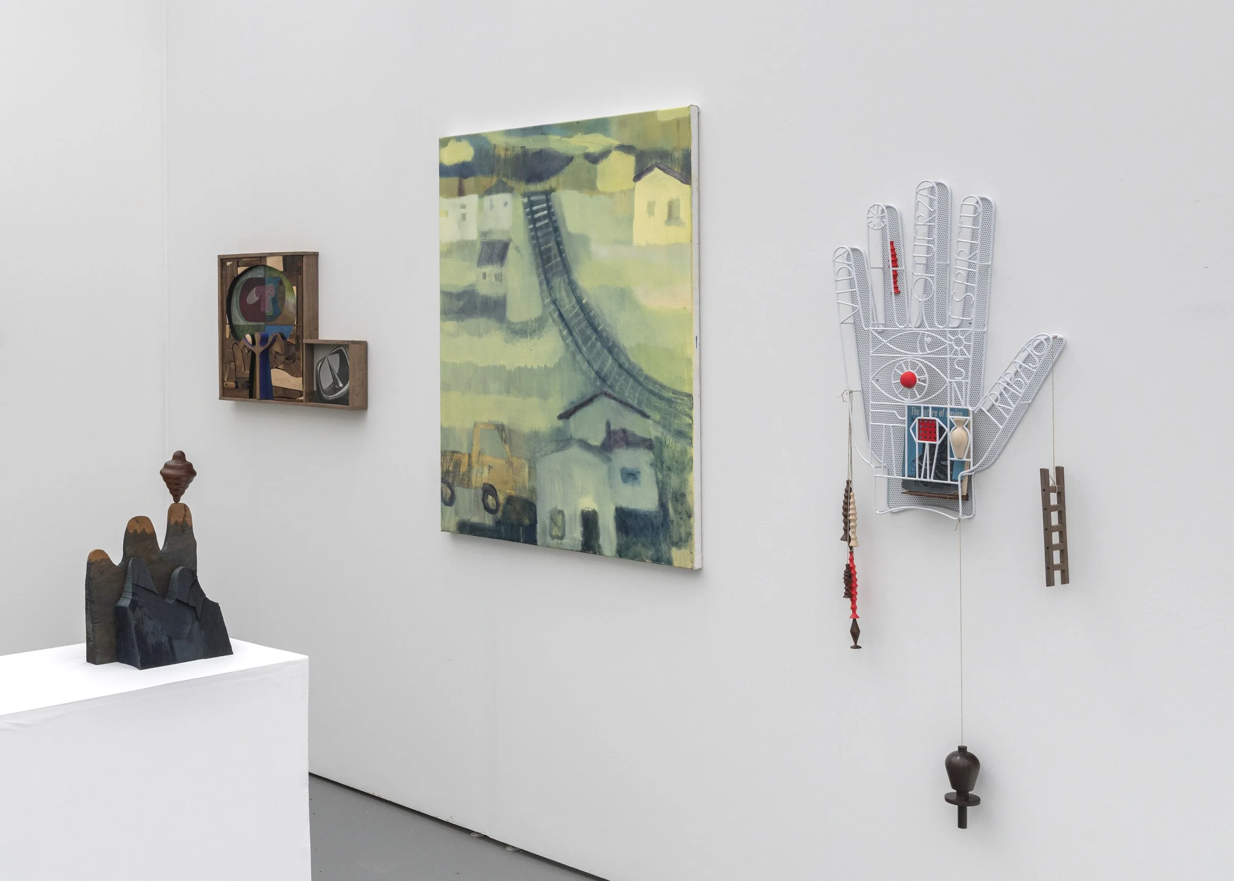 Orlaineta’s hybrid objects, often derived from the visual and material vocabulary of postwar modernism, question how design, industry, and ideology shape our relationship to form. His sculptures challenge the fetishization of the modern object, dismantling its cultural and economic hierarchies to reveal new layers of significance. Limniou, meanwhile, turns her attention to the human presence within the landscape—depicting figures engaged in acts of labor, ritual, and communion. Her work evokes the enduring rhythms of rural life and folk tradition, positioning the landscape not as backdrop but as an active force of memory and transformation.